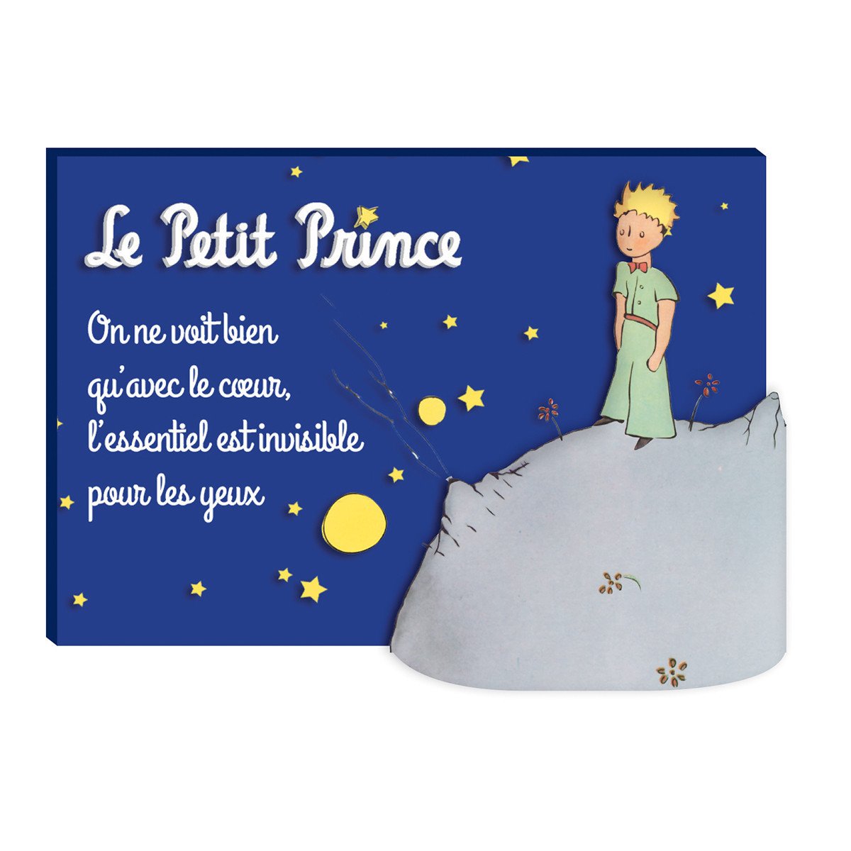 Μαγνήτης από ρητίνη με τον Μικρό Πρίγκιπα στον πλανήτη του και με το περίφημο απόφθεγμα «Μόνο με την καρδιά βλέπεις καλά, η ουσία είναι αόρατη στα μάτια». Από τα πρωτότυπα σχέδια του Antoine de Saint-Exupery. Αυτό το προϊόν δεν είναι παιδικό παιχνίδι. Προορίζεται μόνο για ενήλικες.
