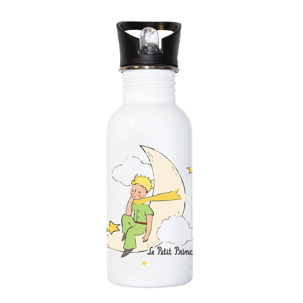 Μπουκάλι, ανοξείδωτο με καλαμάκι 500 ml, με τον Μικρό Πρίγκιπα να κάθεται στο φεγγάρι. Από τα πρωτότυπα σχέδια του Antoine de Saint-Exupery.