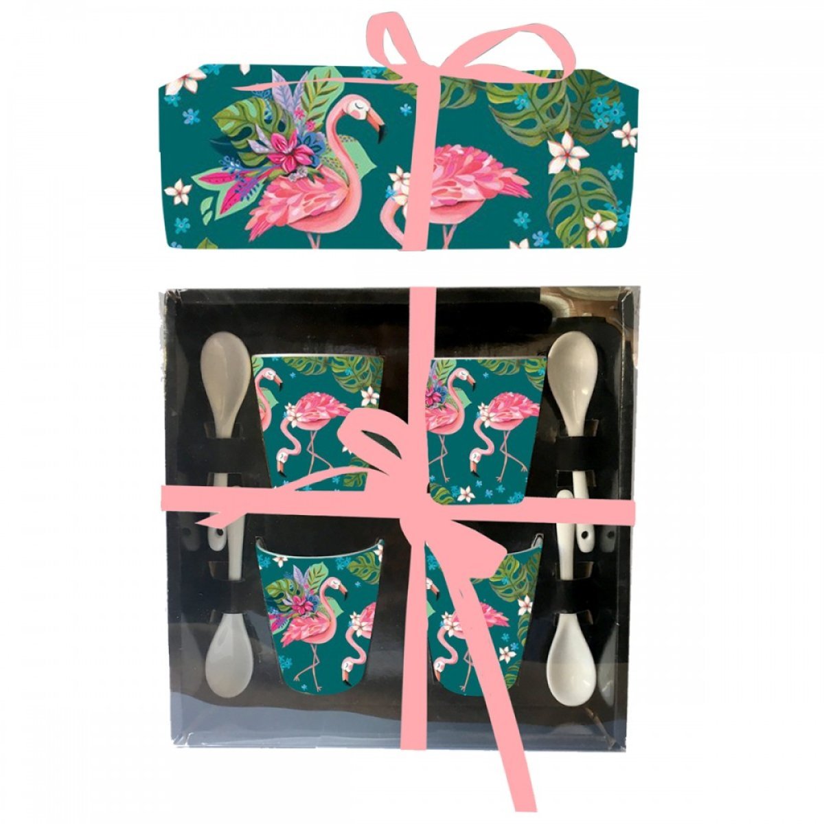 Σετ 4 Κούπες Espresso Με Κουταλάκια Flamingo 90 ml 8 cm