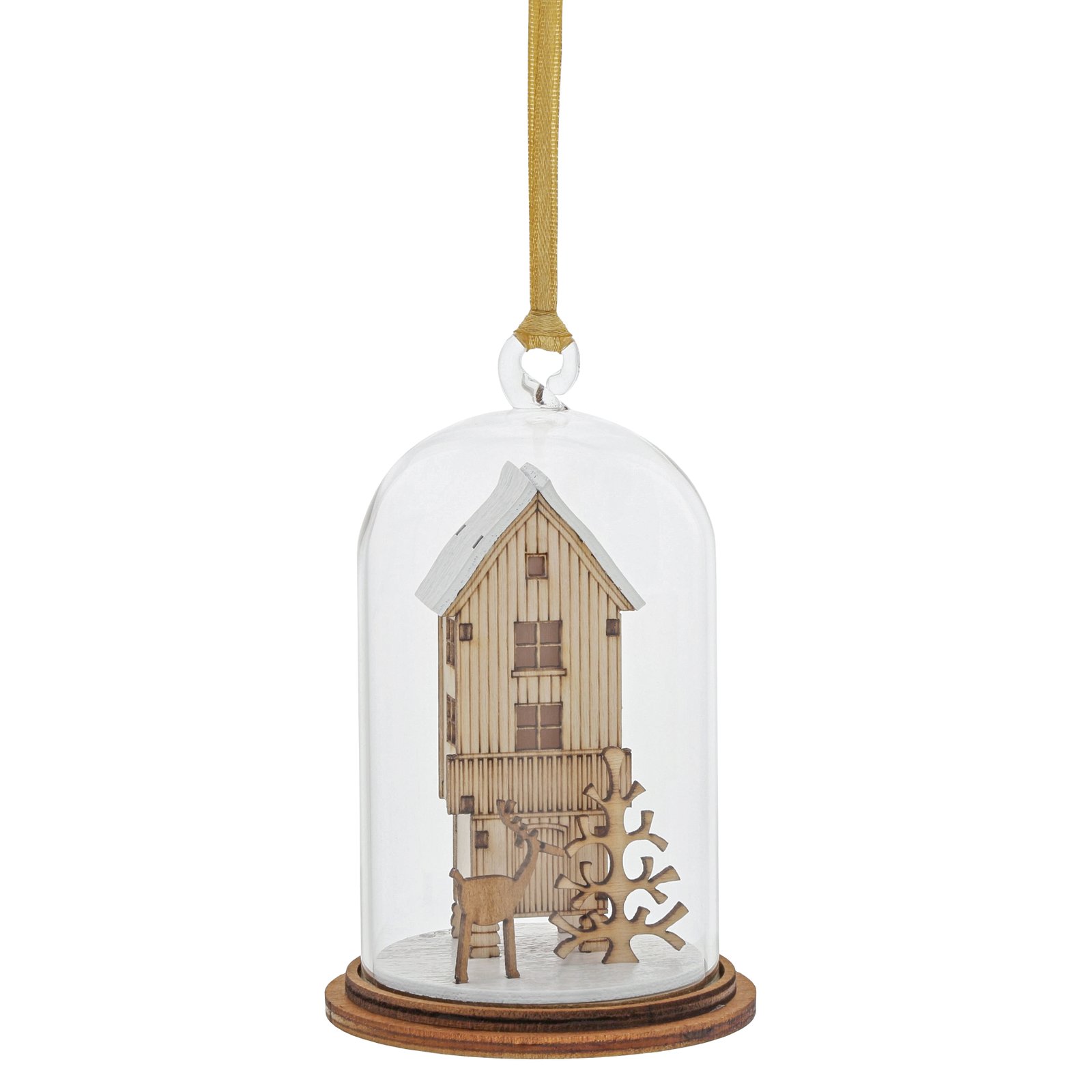 Το πνεύμα των Χριστουγέννων. Μια συλλογή από υπέροχα ξύλινα διακοσμητικά που αποτυπώνουν την ουσία εκείνης της ιδιαίτερης εποχής του χρόνου. Αυτός ο γυάλινος θόλος με χριστουγεννιάτικη διακόσμηση περικλείει έναν από τους αγαπημένους τάρανδους του Άγιου Βασίλη, ένα χριστουγεννιάτικο δέντρο και έχει κορδέλα που θα σας βοηθήσει να το κρεμάσετε το χριστουγεννιάτικο δέντρο σας. Αυτό το κλασικό vintage, διακοσμητικό Kloche θα κάνει μια εκπληκτική εμφάνιση. Υλικό: Γυαλί με ξύλινη βάση. Συσκευασία: Παρουσιάζεται σε επώνυμη μοναδική βιοδιασπώμενη συσκευασία δώρου.